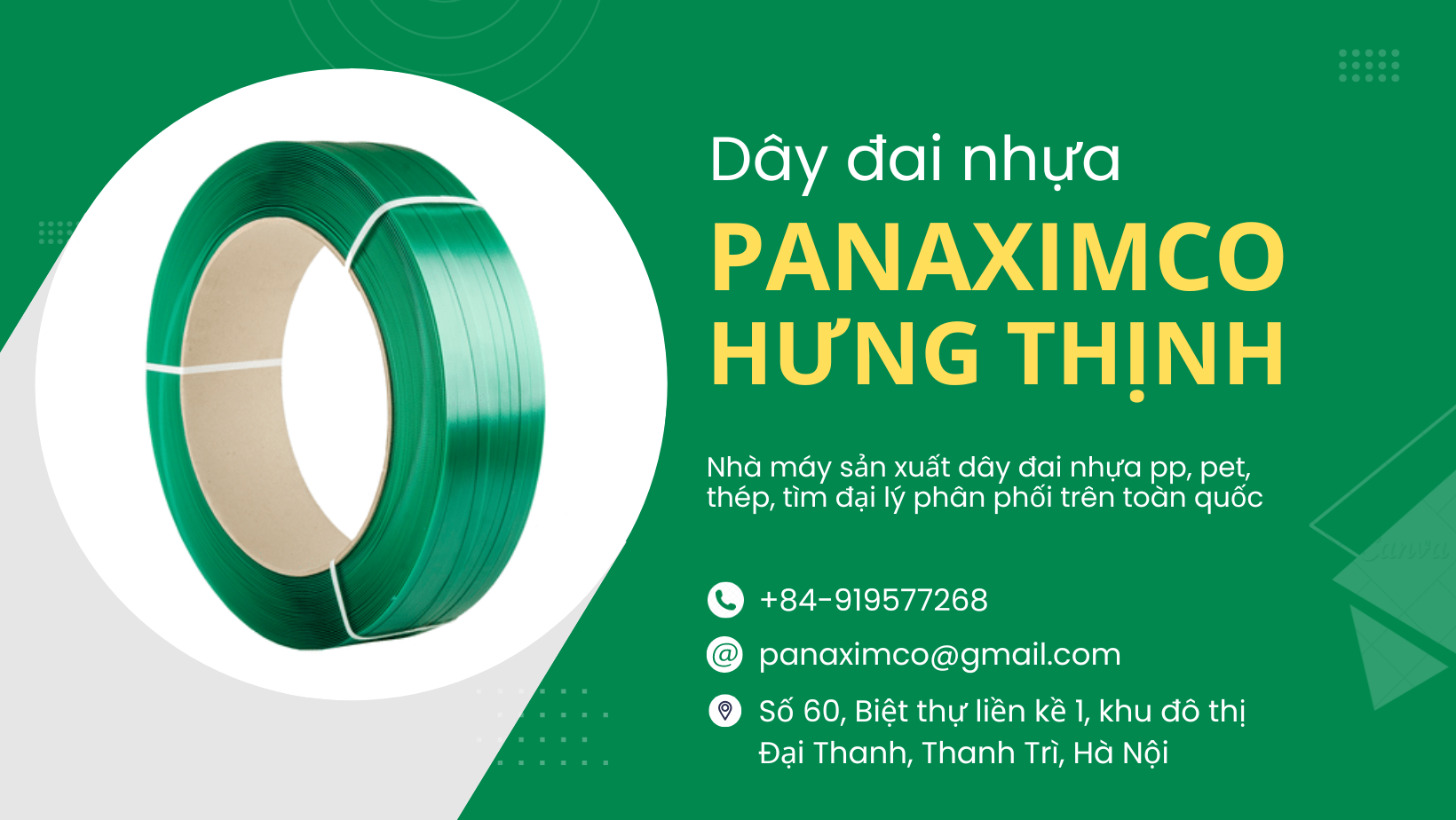 Chúng tôi, Công ty Cổ phần Đầu Tư PANAXIMCO Hưng Thịnh là doanh nghiệp chuyên sản xuất và xuất khẩu dây đai nhựa PP lớn nhất Việt Nam. Với nhà xưởng diện tích trên 5000m2, cùng dây chuyền sản xuất hiện đại, công nghệ tiên tiến của Italia.