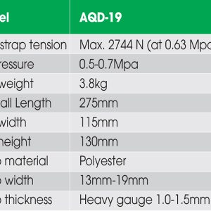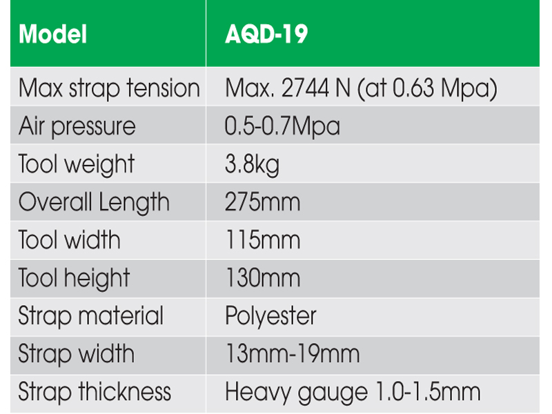 Đặc tính kỹ thuật của dụng cụ đóng đai AQD-19 bao gồm: